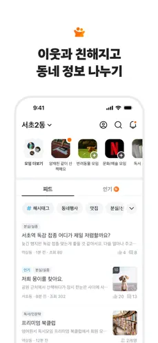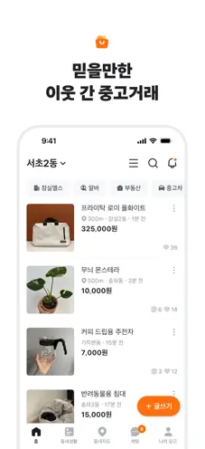 당신 근처의 동네 커뮤니티. 중고 거래부터 동네 정보까지, 이웃과 함께해요. 가깝고 따뜻한 당신의 근처를 만들어요.