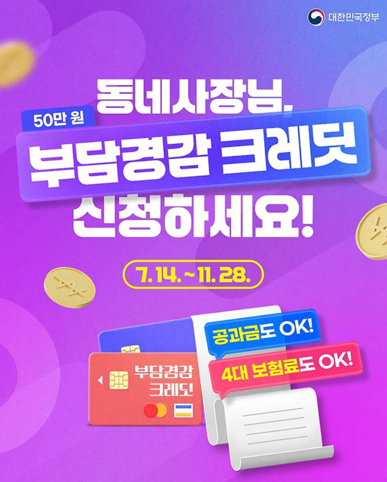 - 지원 금액: 공과금 및 4대 보험료 납부에 사용 가능한 50만 원 크레딧.